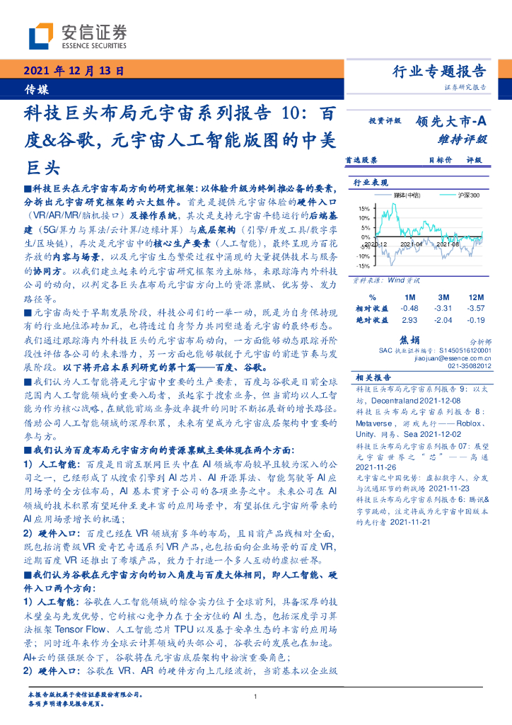安信证券:科技巨头布局元宇宙系列报告10:百度&谷歌,元宇宙人工智能版图的中美巨头.pdf