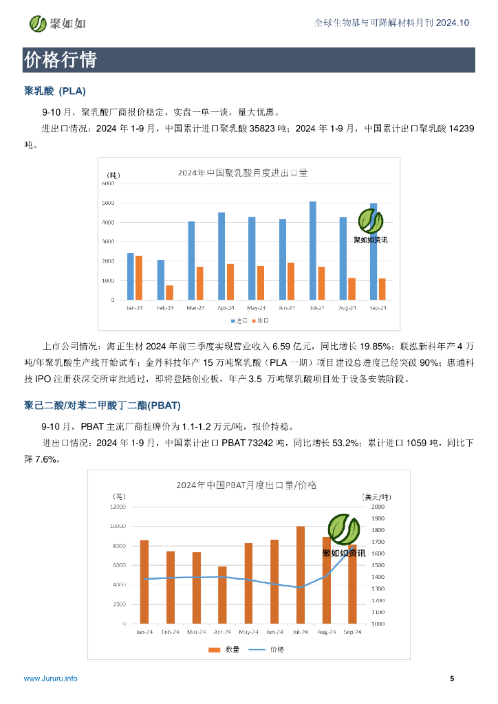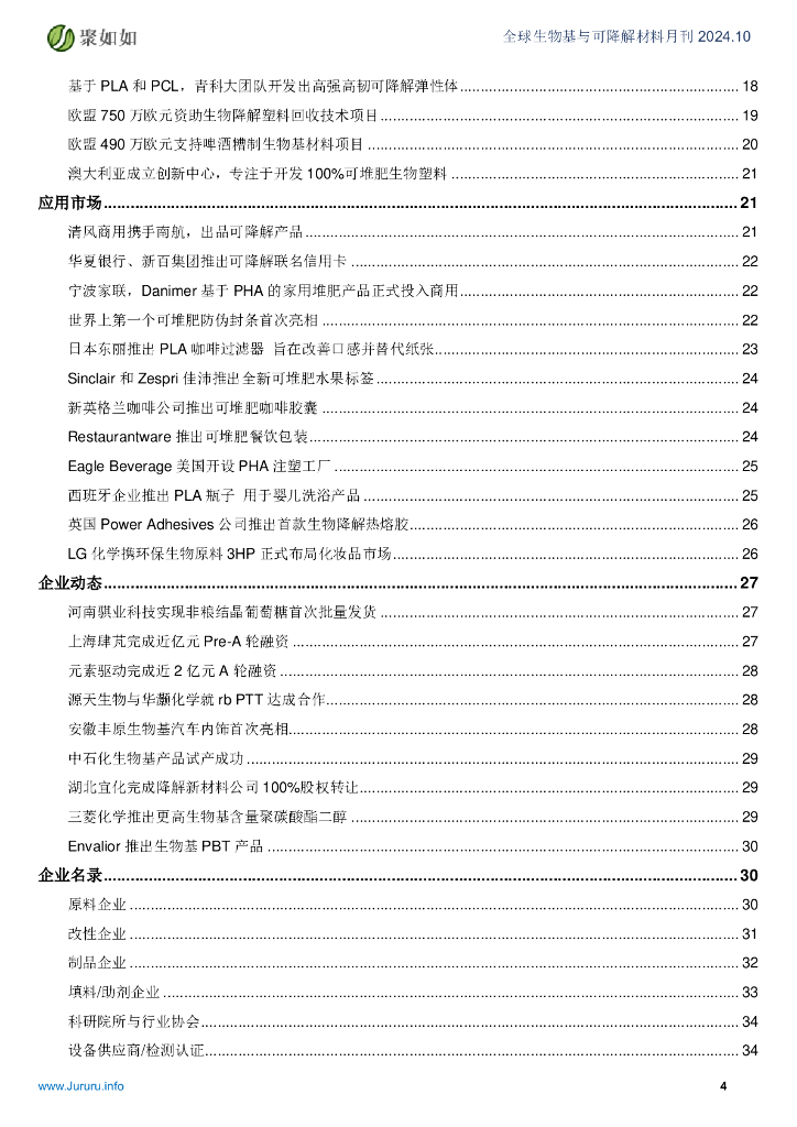 聚如如资讯:2024年10月第三十期全球生物基与可降解材料月刊报告.pdf