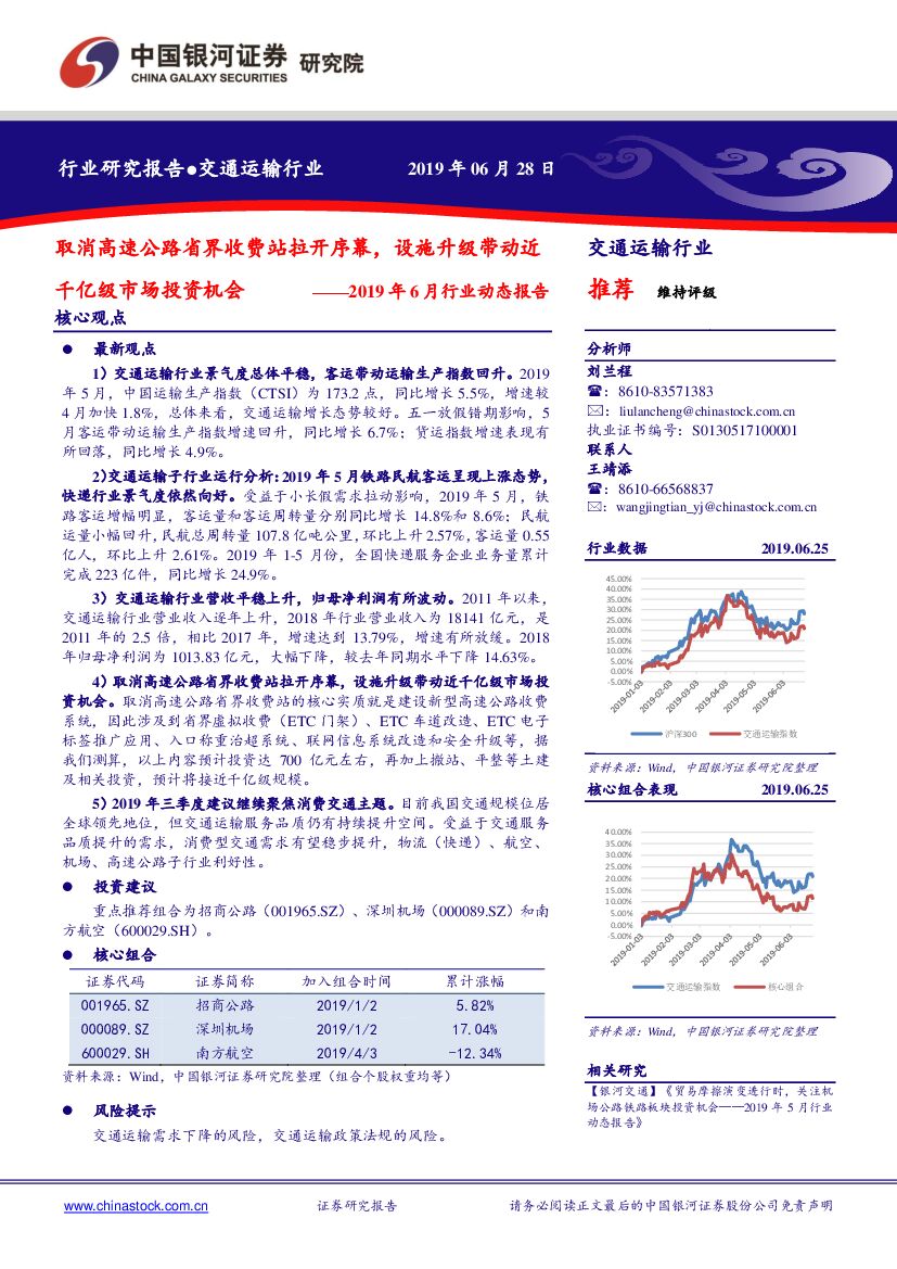 中国银河:交通运输行业2019年6月行业动态报告:取消高速公路省界收费站拉开序幕,设施升级带动近千亿级市场投资机会.pdf