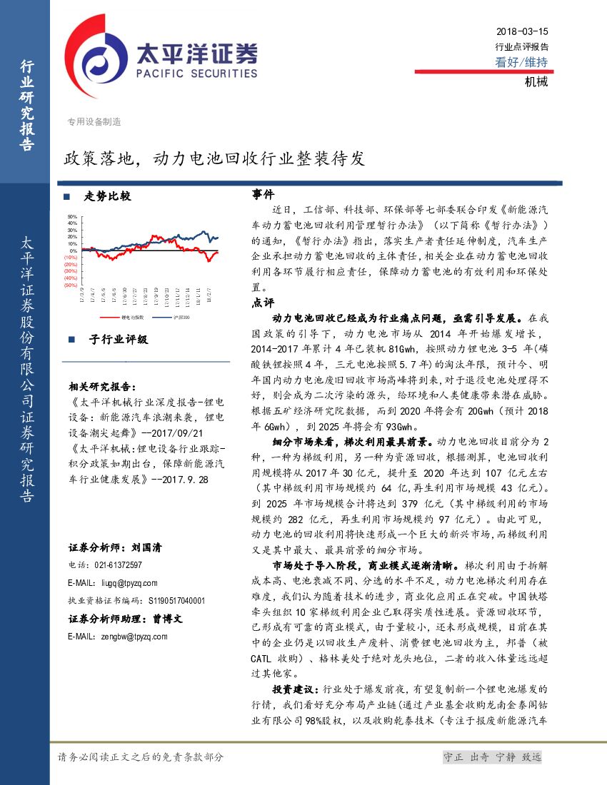 太平洋证券:机械:政策落地,动力电池回收行业整装待发.pdf