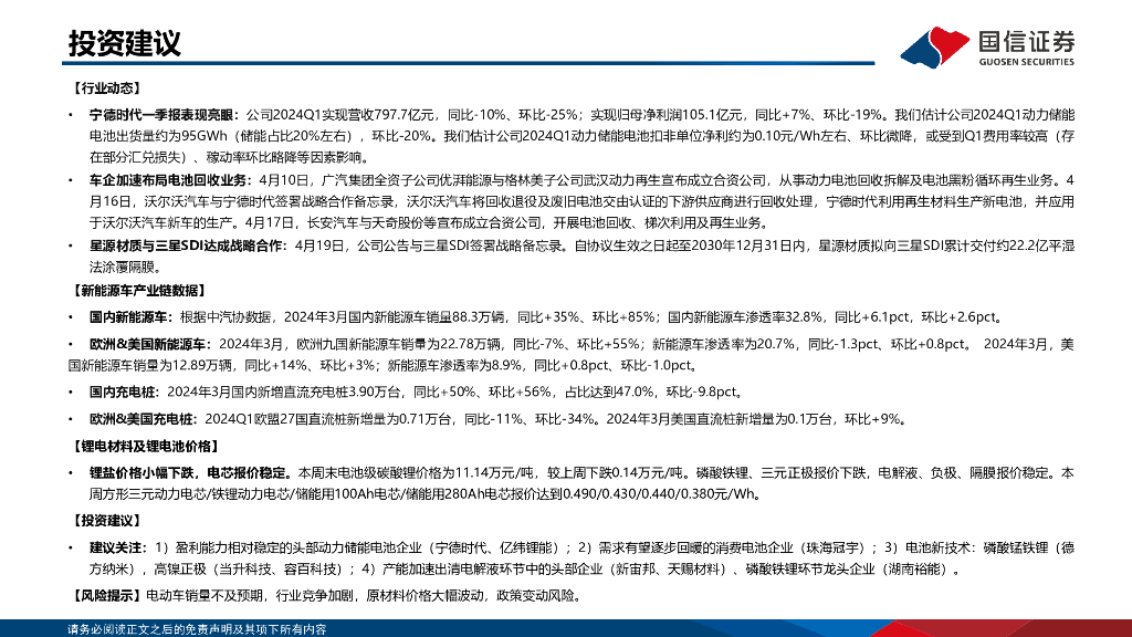 国信证券:锂电产业链周评(4月第3周):宁德时代一季报表现亮眼,车企积极推动电池回收布局.pdf