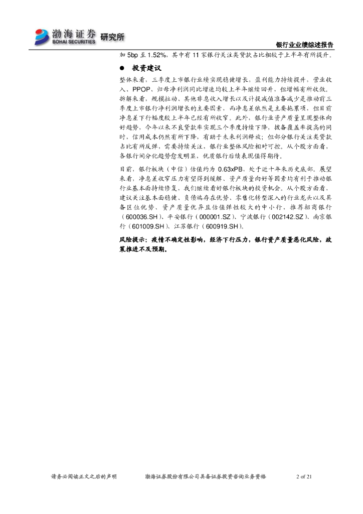 渤海证券:银行业2021年三季报业绩综述:业绩稳健增长,关注优质个股.pdf