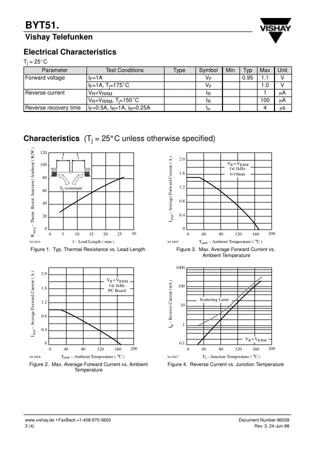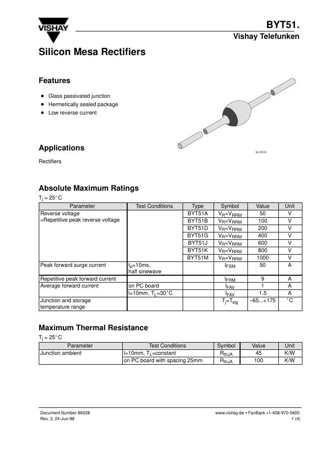KEMET BYT51. Vishay Telefunken Silicon Mesa Rectifiers 数据手册.pdf