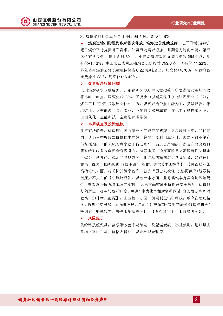 山西证券:煤炭行业周报:供需继续改善,煤价整体企稳回升.pdf
