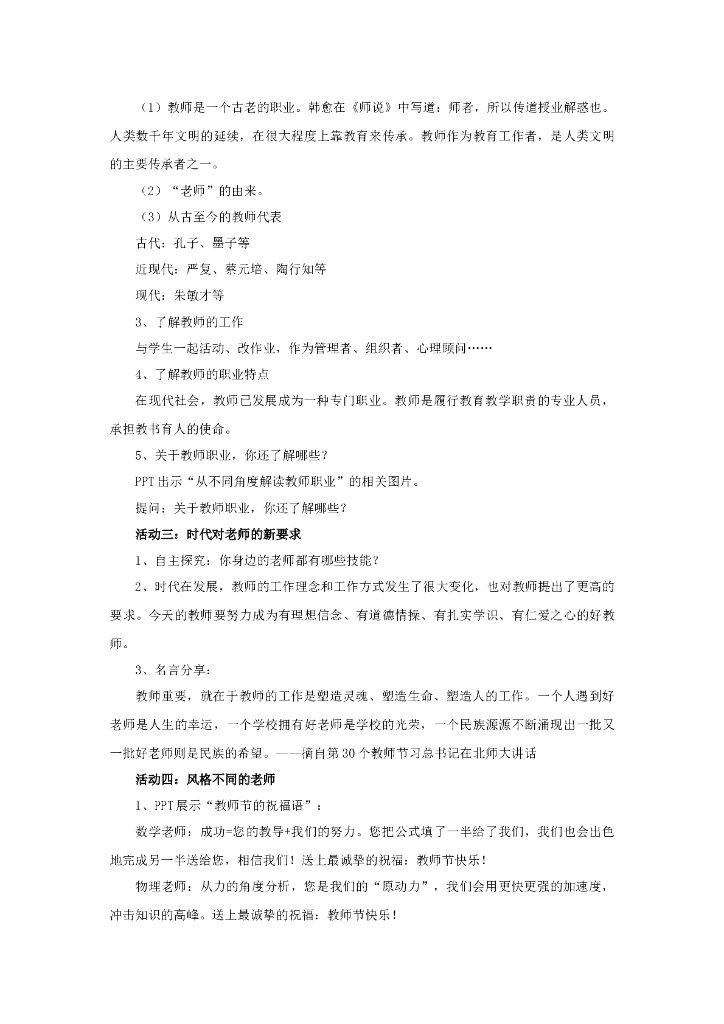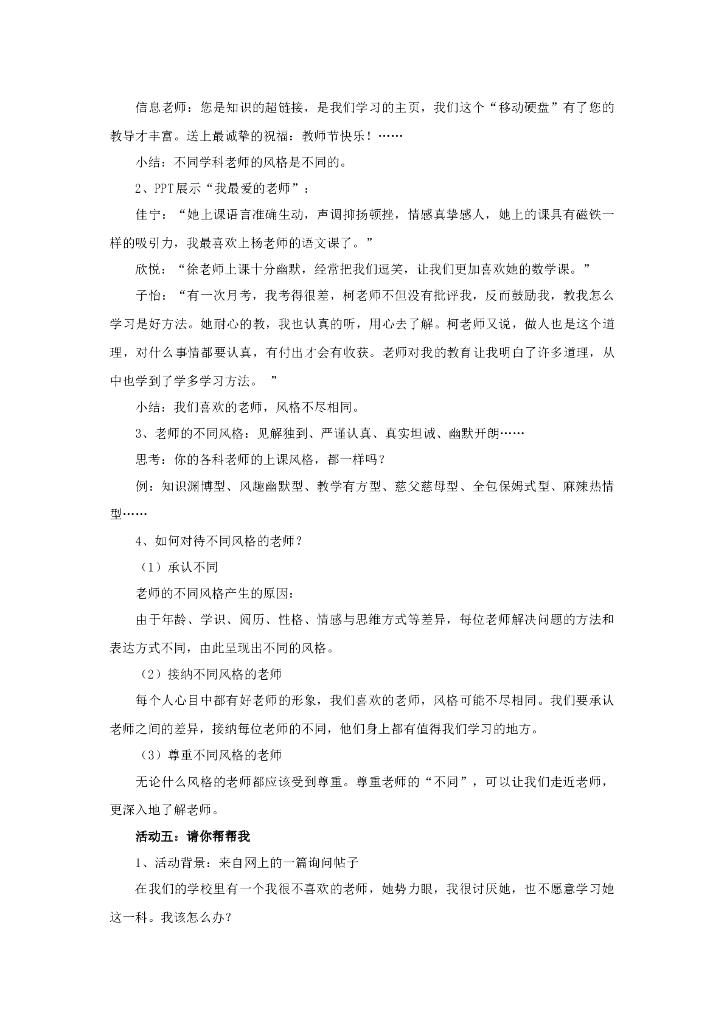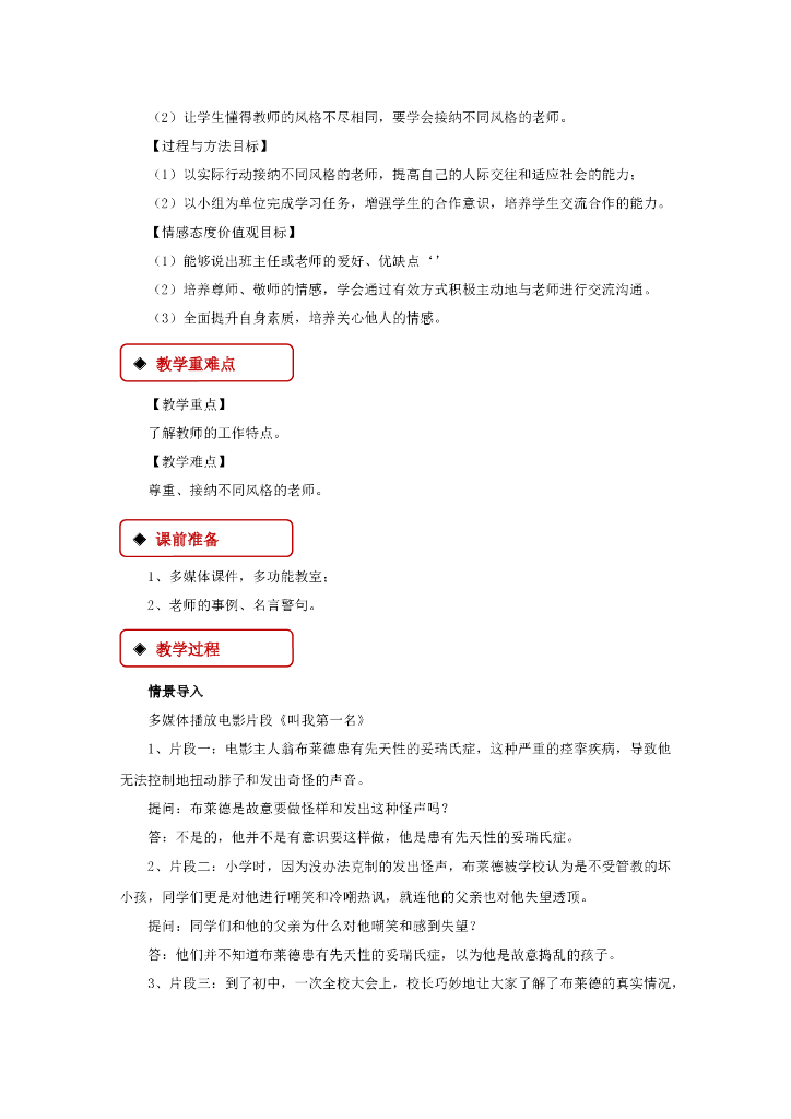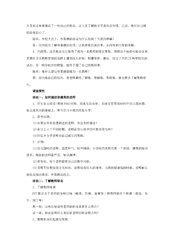 七年级上册 初中道德与法治6.1《走近老师》教学设计1.doc