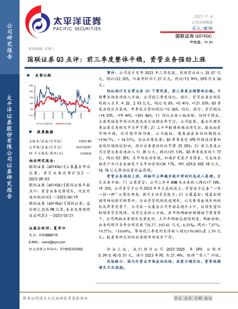 太平洋证券:国联证券(601456)-Q3点评:前三季度整体平稳,资管业务强劲上涨.pdf
