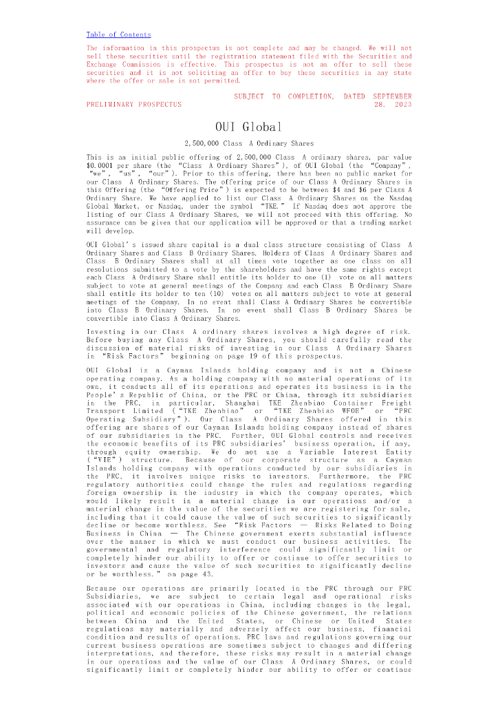 OUI Global(TKE)美股IPO上市招股说明书.pdf