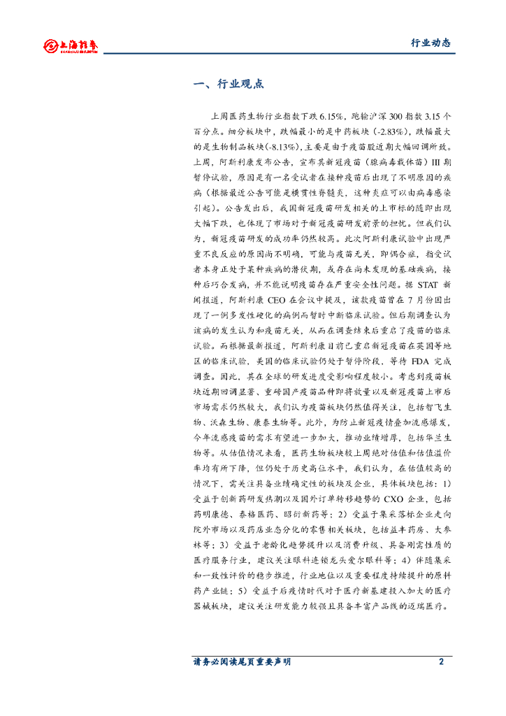 上海证券:医药生物行业周报:新冠疫苗研发继续推进 关注高景气细分板块.pdf