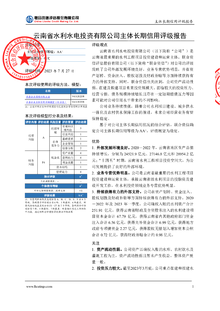 联合资信:云南省水利水电投资有限公司主体长期信用评级报告.pdf