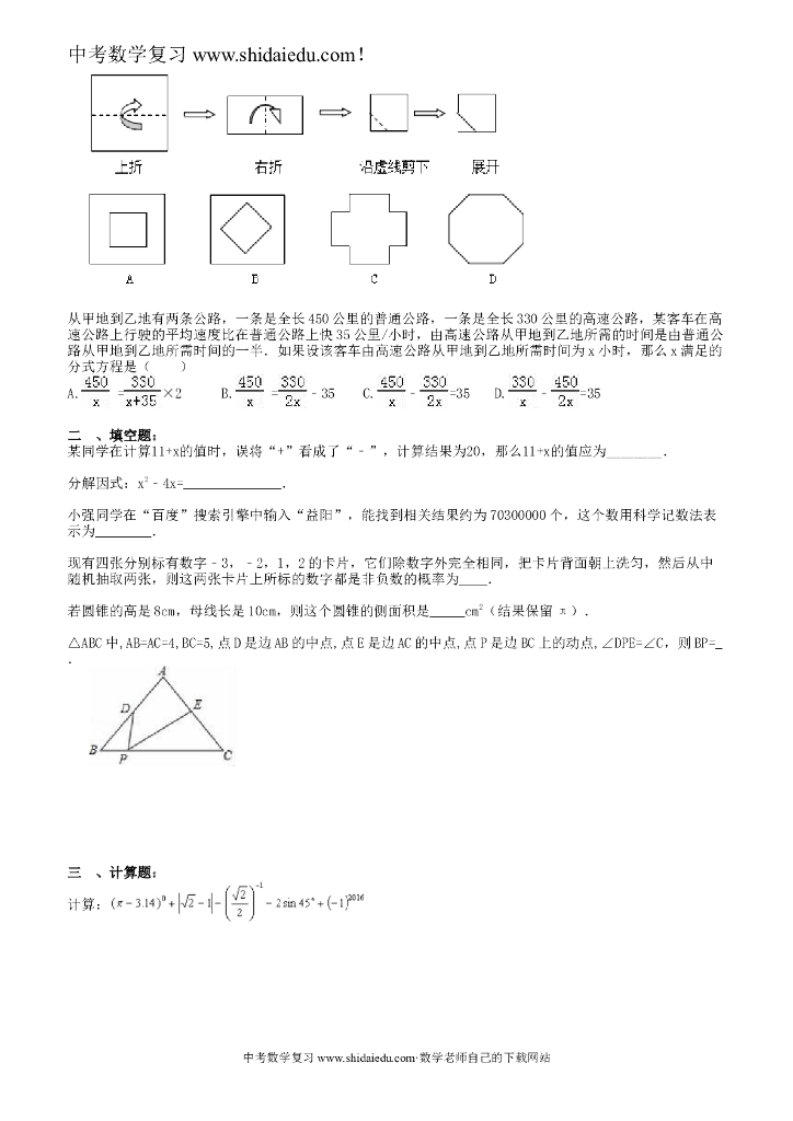 福建省福州市鼓楼区中考数学模拟试卷--有答案.doc