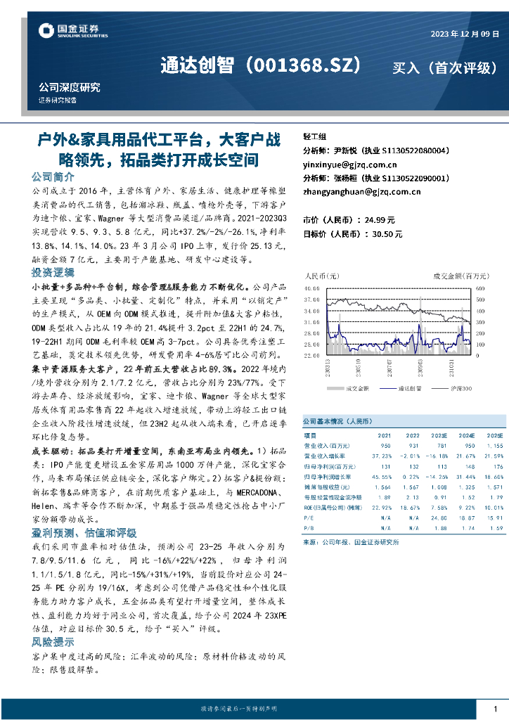 国金证券:通达创智(001368)-户外&家具用品代工平台,大客户战略领先,拓品类打开成长空间.pdf