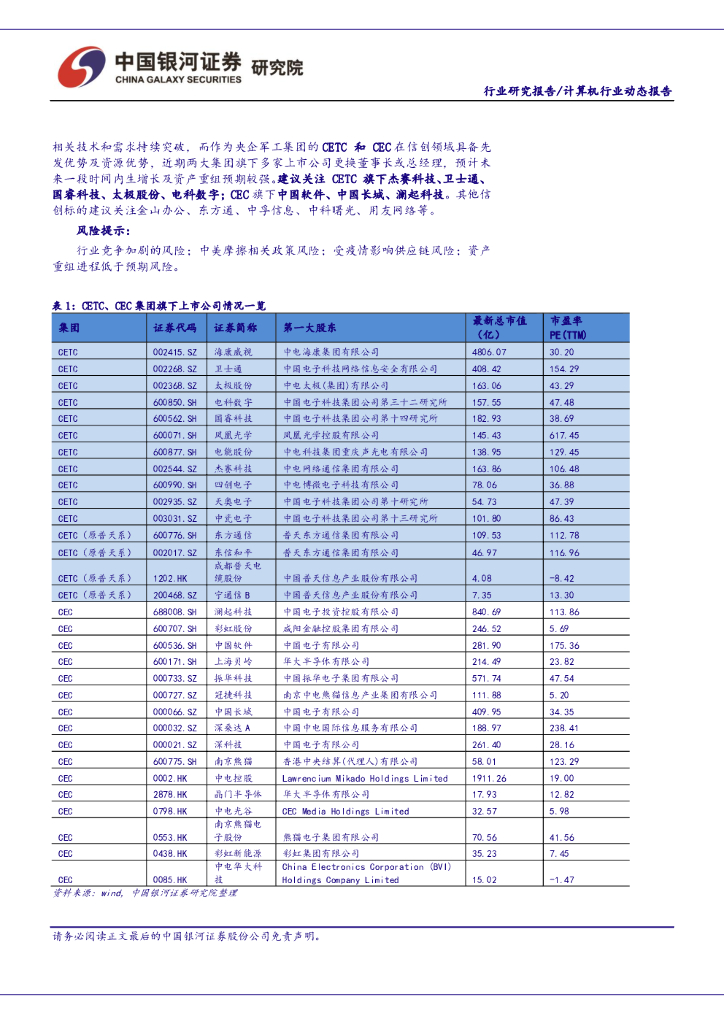 中国银河:计算机行业:两大信创央企巨头CEC、CETC资产梳理及近况跟踪.pdf
