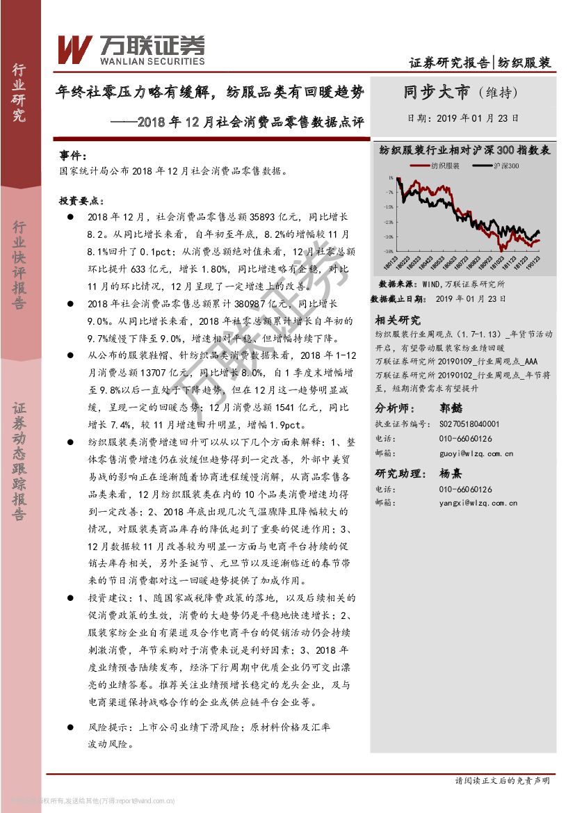 万联证券:纺织服装行业快评报告:2018年12月社会消费品零售数据点评:年终社零压力略有缓解,纺服品类有回暖趋势.pdf