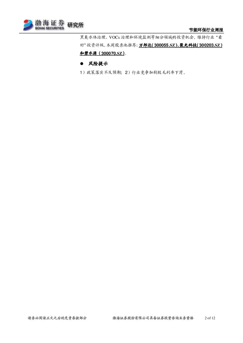 渤海证券:节能环保行业周报:环境监管执法力度持续加大,利好行业健康发展.pdf