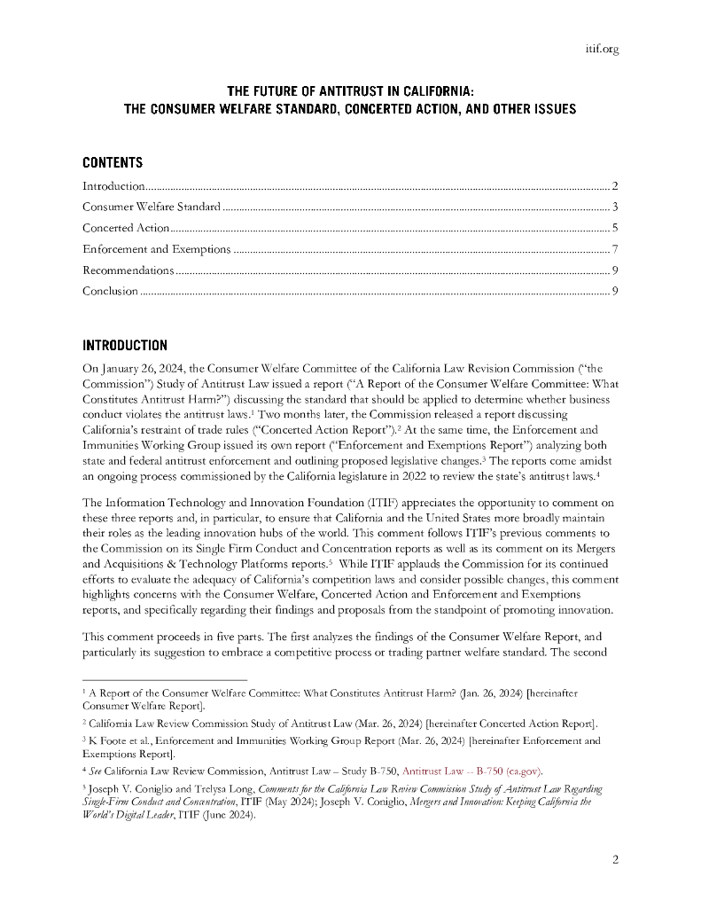 ITIF:2024年加州法律修订委员会关于消费者福利标准、协同行动和其他问题的反托拉斯法研究评论报告(英文版).pdf