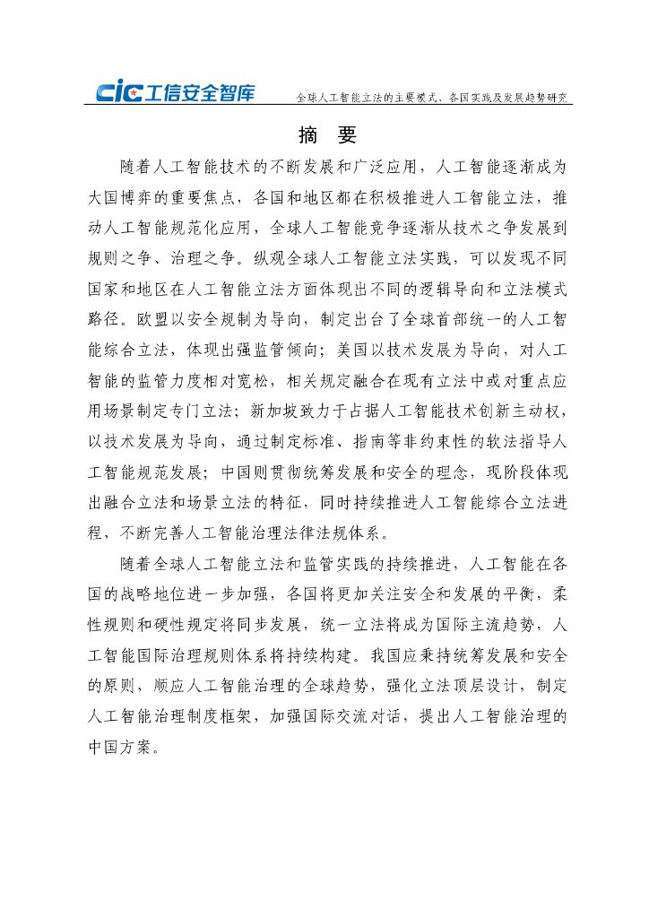 CIC工信安全:2024年全球人工智能立法的主要模式、各国实践及发展趋势研究报告.pdf