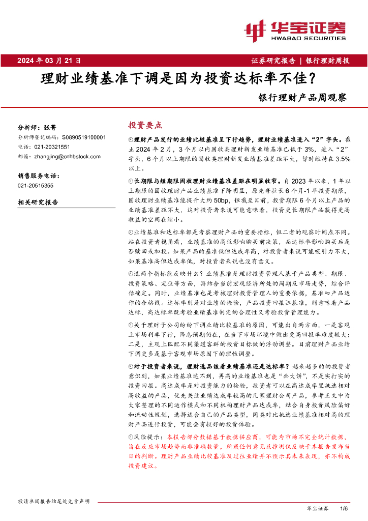 华宝证券:银行理财产品周观察:理财业绩基准下调是因为投资达标率不佳?.pdf