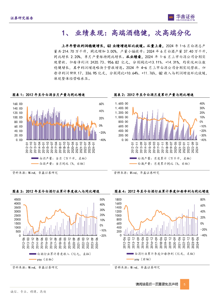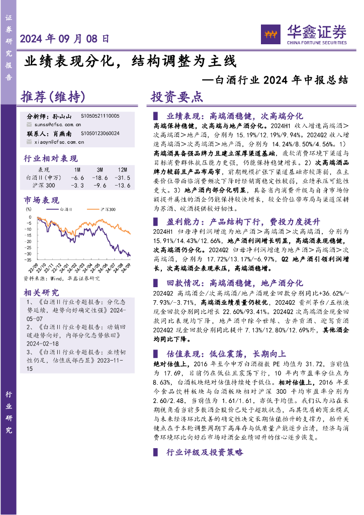 华鑫证券:白酒行业2024年中报总结:业绩表现分化,结构调整为主线.pdf