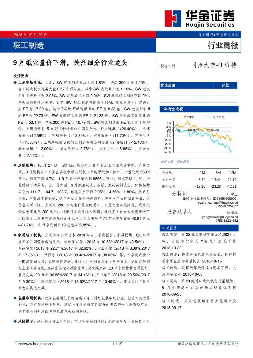 华金证券:轻工制造行业周报:9月纸业量价下滑,关注细分行业龙头.pdf