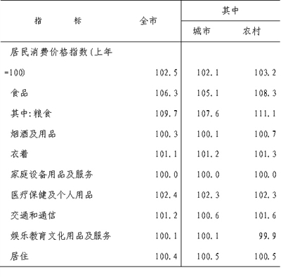 全市居民消费价格总水平比上年上涨2.5%,其中城市上涨2.1%,农村上涨3.2%。