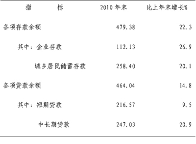 附表4:2010年全部金融机构人民币存贷款(单位:亿元)