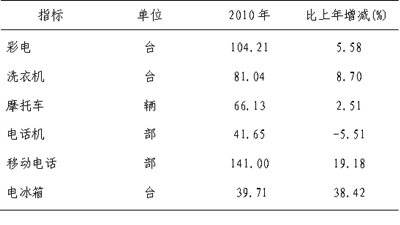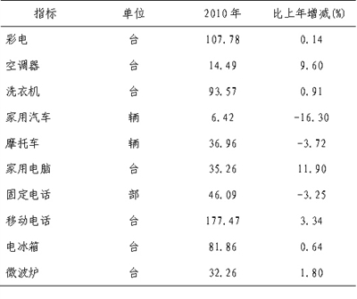 附表5:城镇居民家庭百户耐用消费品拥有量