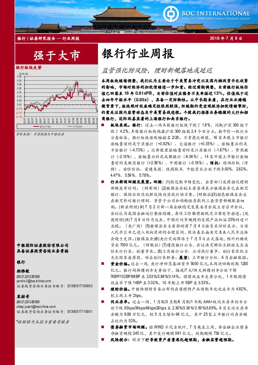 中银国际:银行行业周报:监管强化防风险,理财新规落地或延迟.pdf