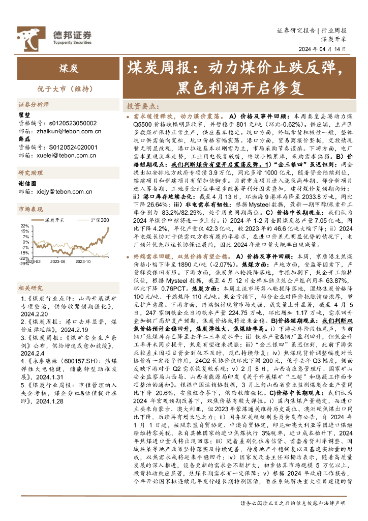 德邦证券:煤炭行业周报:动力煤价止跌反弹,黑色利润开启修复.pdf