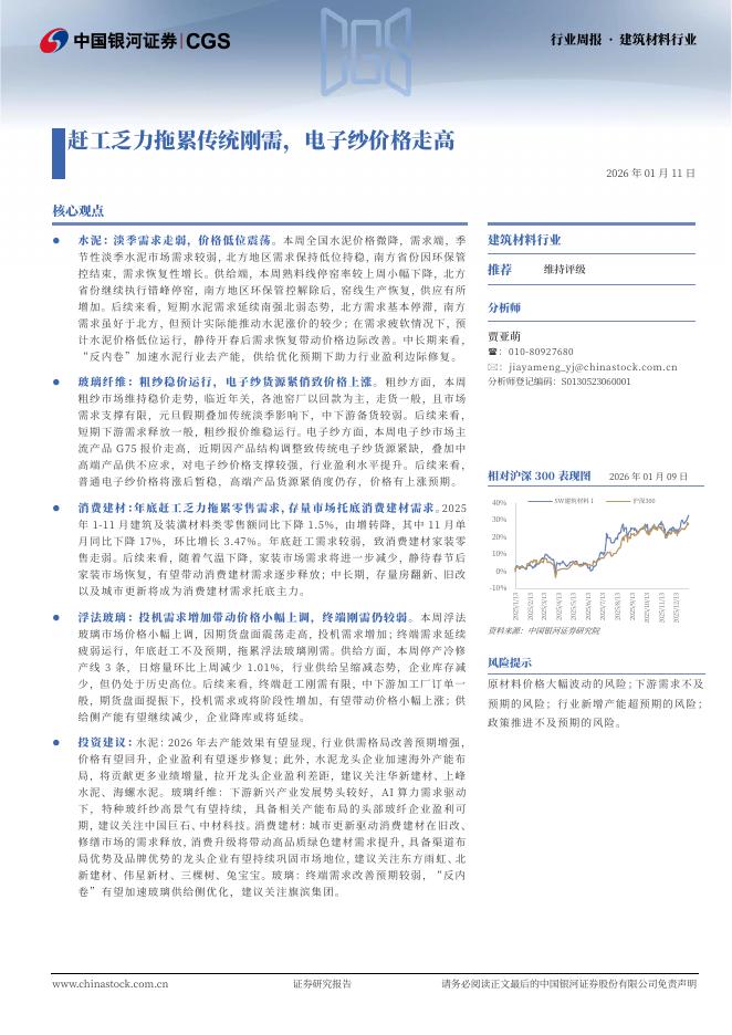 中国银河:建筑材料行业周报·建筑材料行业:赶工乏力拖累传统刚需,电子纱价格走高.pdf