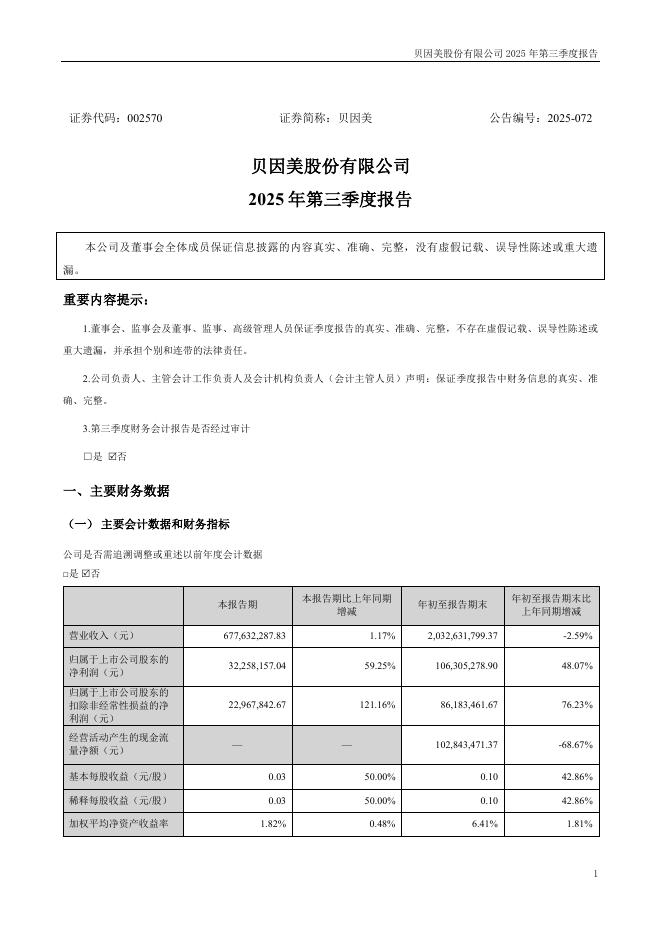 002570-贝因美:2025年三季度报告.pdf