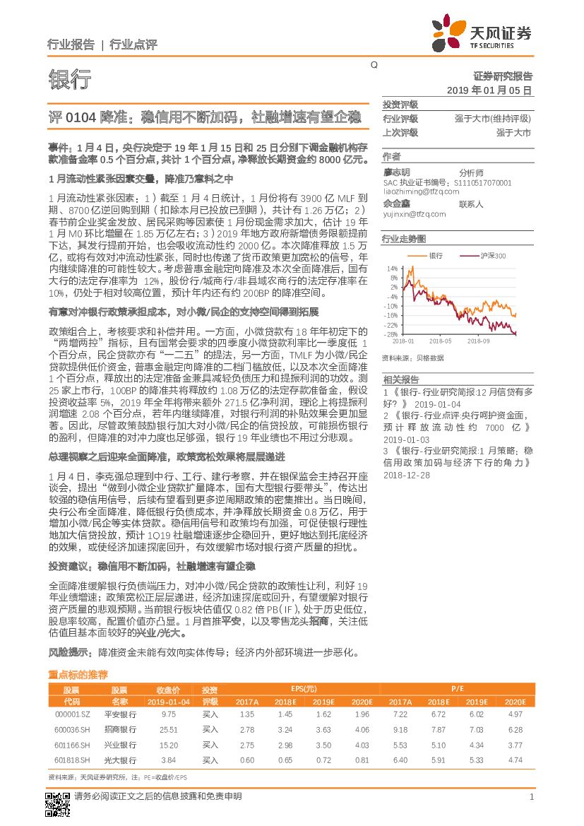 天风证券:银行行业点评:评0104降准:稳信用不断加码,社融增速有望企稳.pdf