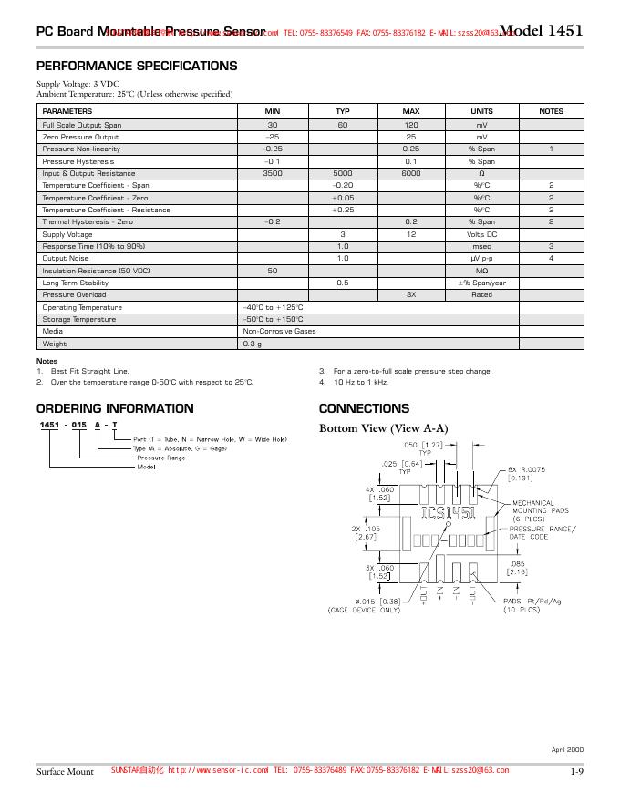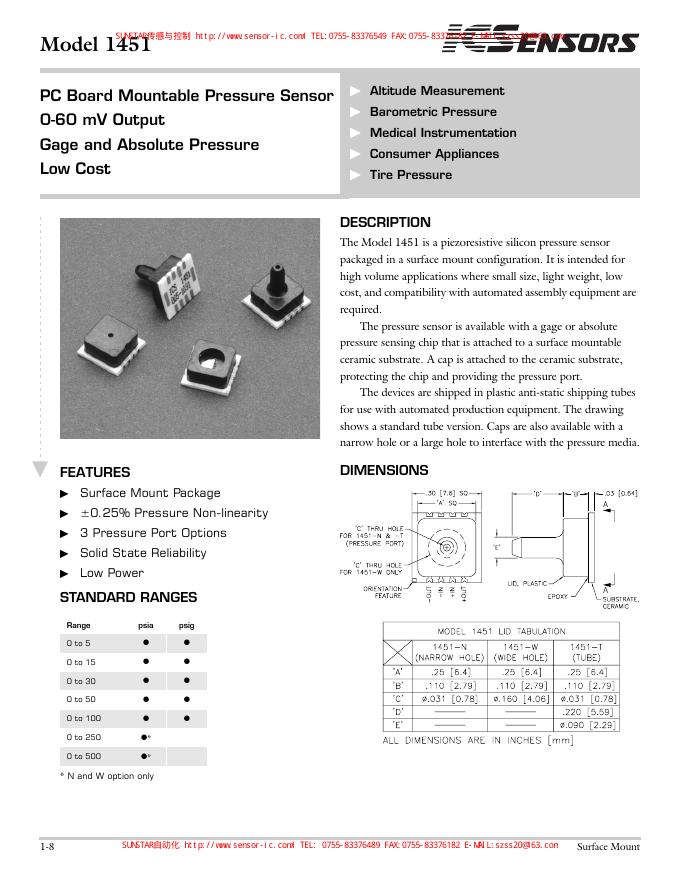 ICSENSORS 1451 PC Board Mountable Pressure Sensor 0-60 mV Output Gage and Absolute Pressure Low Cost.pdf