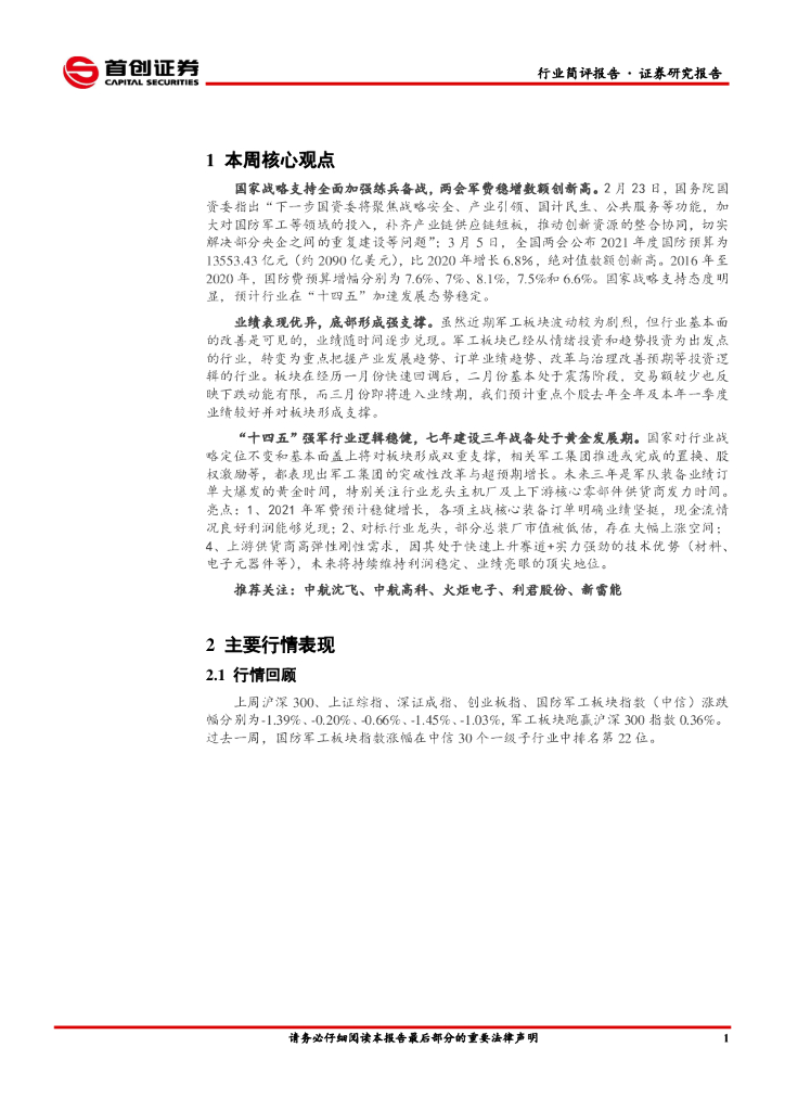 首创证券:国防军工行业周报:全面加强练兵备战,军费稳增助力装备发展.pdf