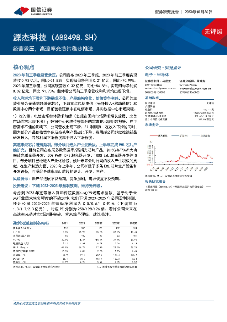 国信证券:源杰科技(688498)-经营承压,高速率光芯片稳步推进.pdf