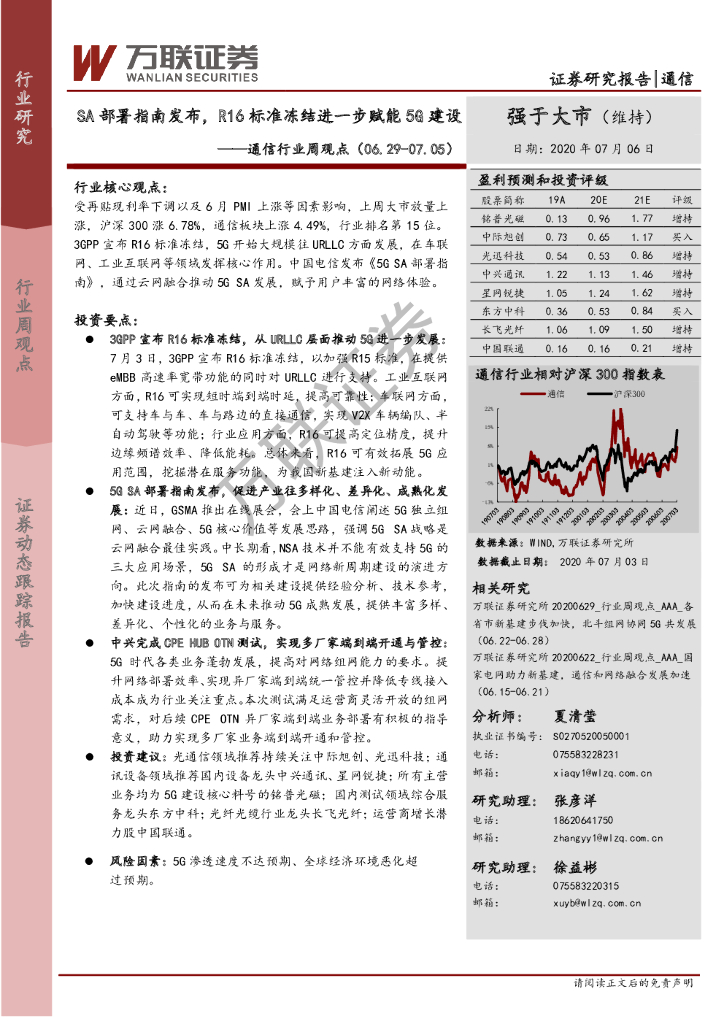 万联证券:通信行业周观点:SA部署指南发布,R16标准冻结进一步赋能5G建设.pdf