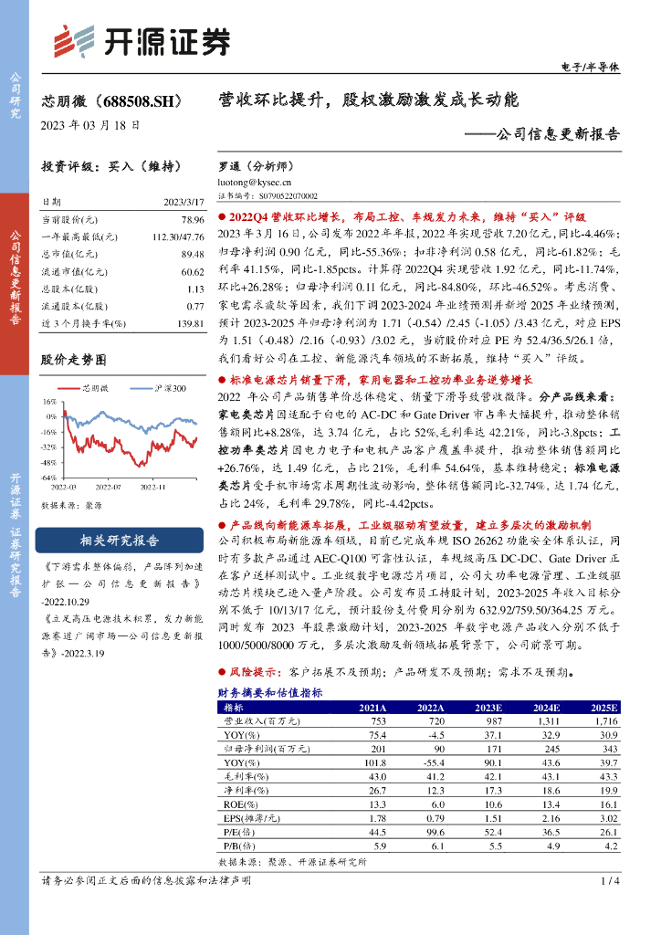 开源证券:芯朋微(688508)-公司信息更新报告:营收环比提升,股权激励激发成长动能.pdf