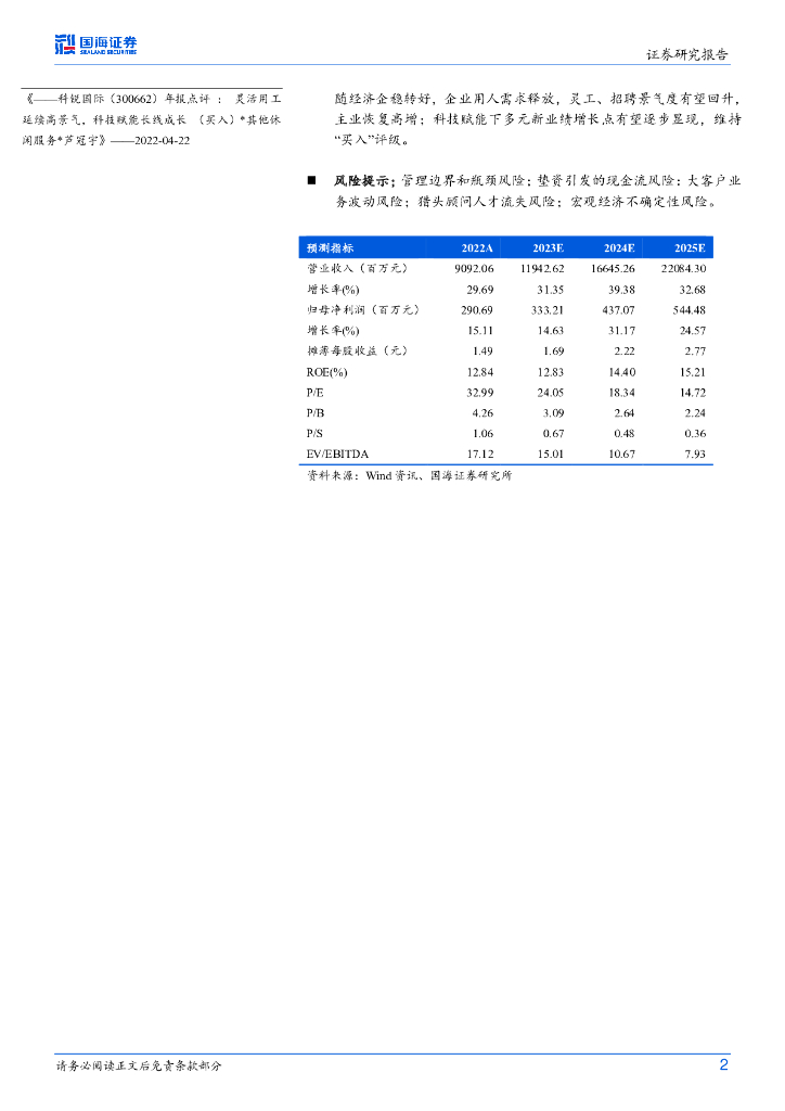 国海证券:科锐国际(300662)-2023Q1点评:基本面筑底,业绩有望逐季改善.pdf
