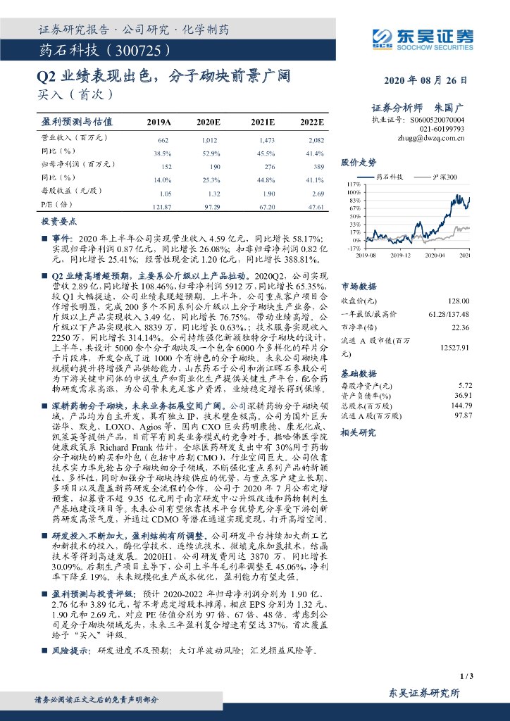 东吴证券:药石科技(300725)-Q2业绩表现出色,分子砌块前景广阔.pdf