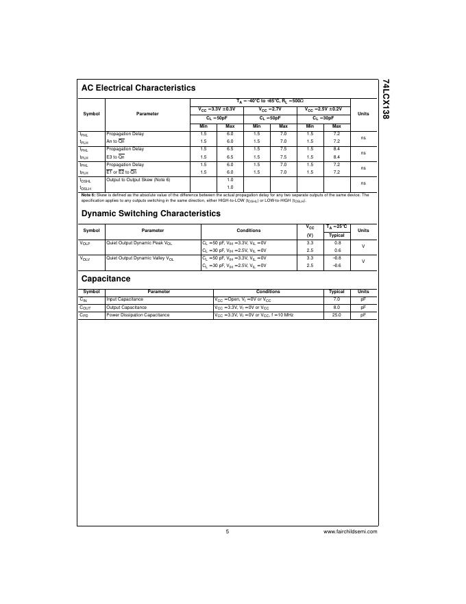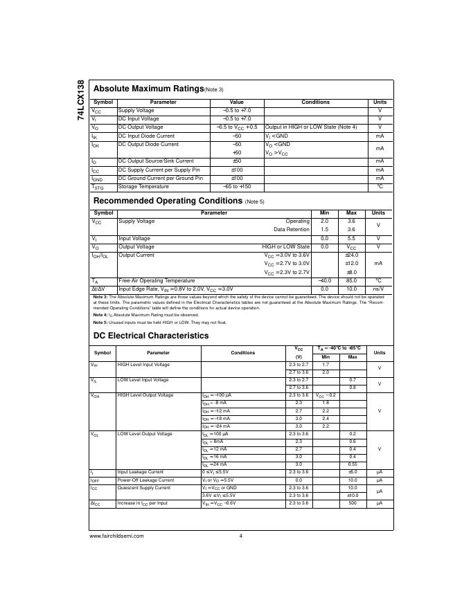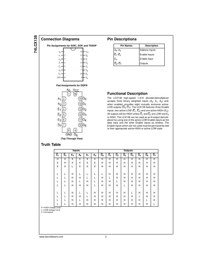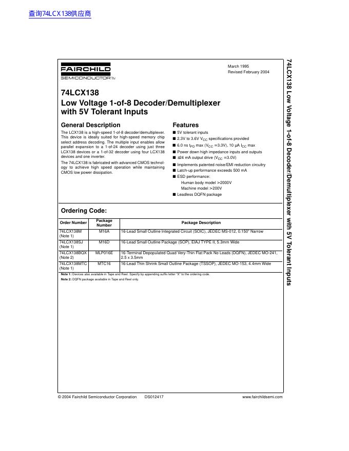 FAIRCHILD 74LCX138 Low Voltage 1-of-8 Decoder/Demultiplexer with 5V Tolerant Inputs 数据手册.pdf