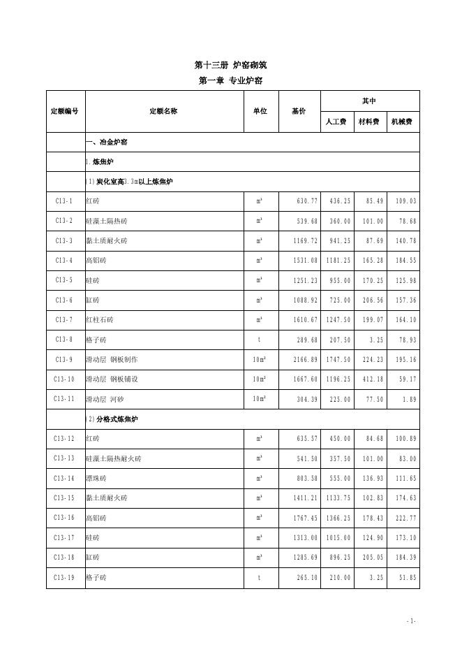 山西省安装工程预算定额 简易计税价目汇总表(2019年增值税调整版)第十三册 炉窑砌筑.pdf