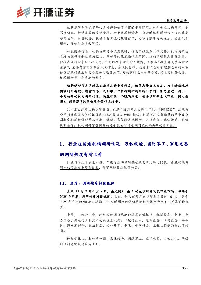 开源证券:机构调研周跟踪:机构关注度环比回升:农林牧渔、国防军工、家电-260211.pdf