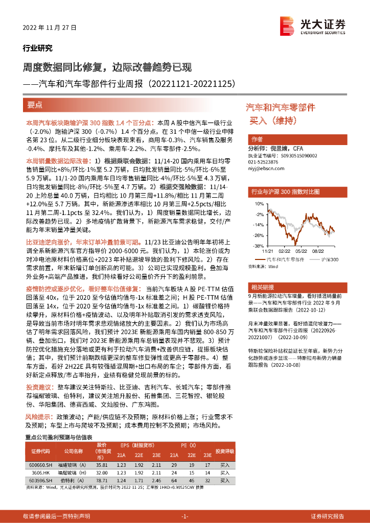 光大证券:汽车和汽车零部件行业周报:周度数据同比修复,边际改善趋势已现.pdf
