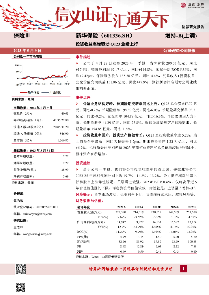 山西证券:新华保险(601336)-投资收益高增驱动Q123业绩上行.pdf