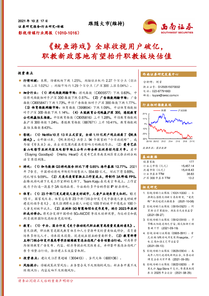 西南证券:影视传媒行业周报:《鱿鱼游戏》全球收视用户破亿,职教新政落地有望抬升职教板块估值.pdf