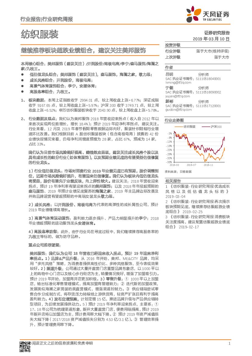 天风证券:纺织服装行业研究周报:继续推荐板块超跌业绩组合,建议关注美邦服饰.pdf