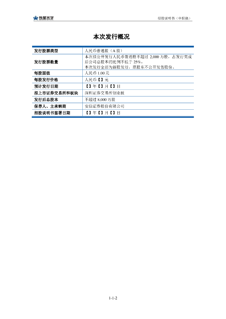 浙江伟星光学股份有限公司深交所创业板IPO上市招股说明书.pdf