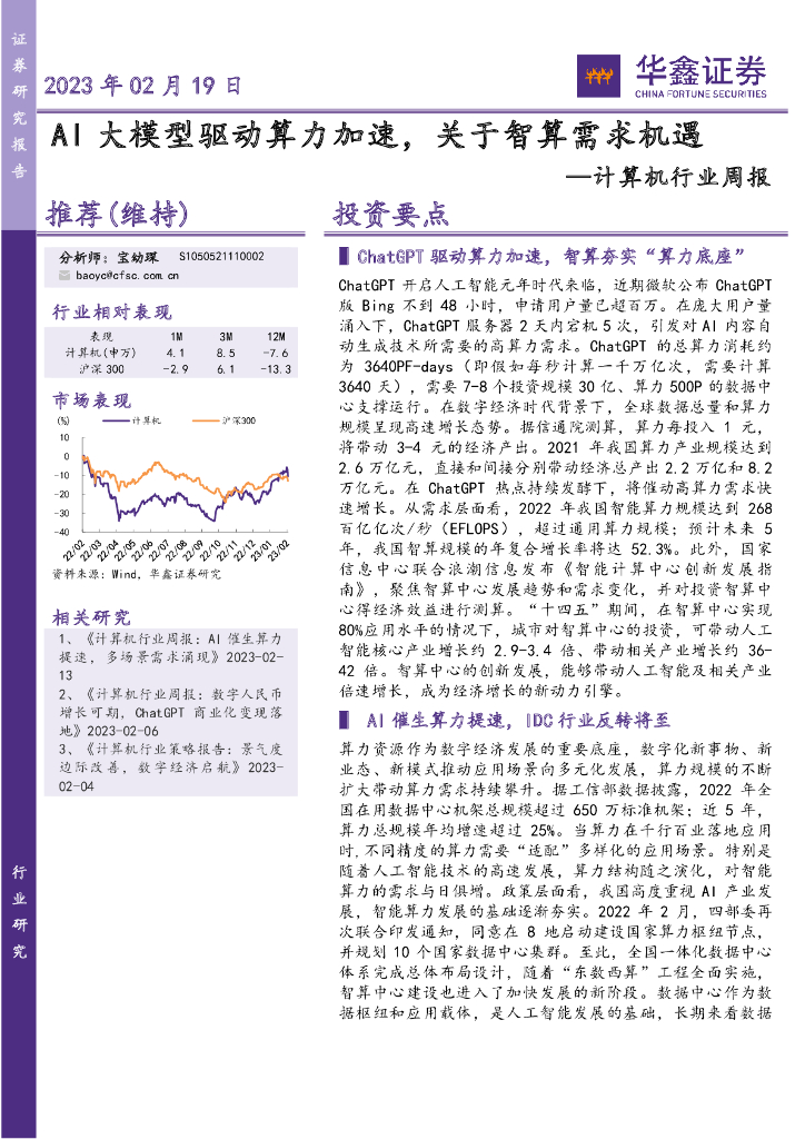 华鑫证券:计算机行业周报:AI大模型驱动算力加速,关于智算需求机遇.pdf