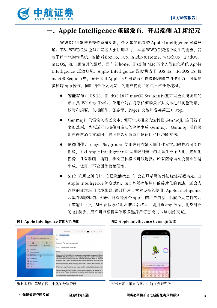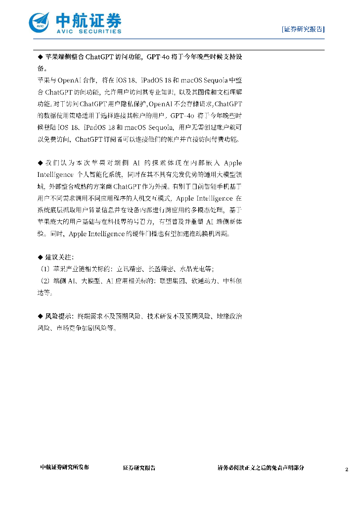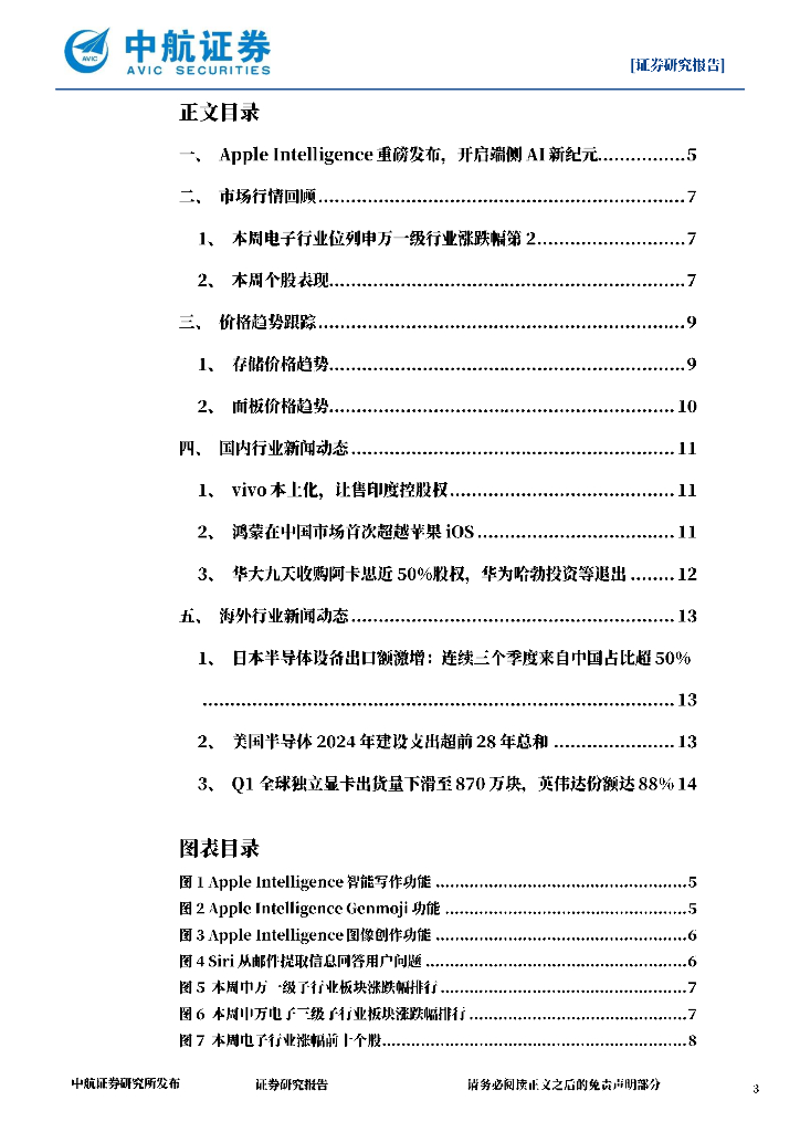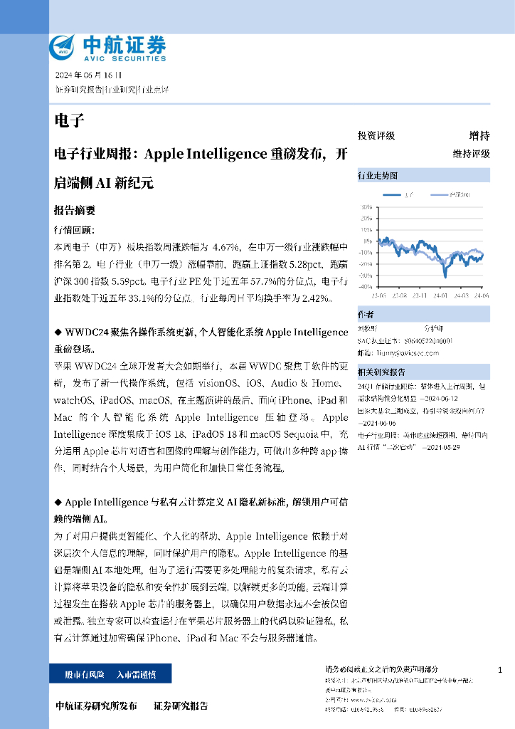 中航证券:电子行业周报:AppleIntelligence重磅发布,开启端侧AI新纪元.pdf