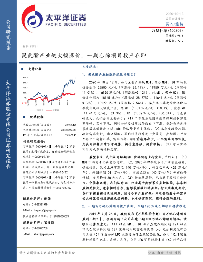 太平洋证券:万华化学(600309)-聚氨酯产业链大幅涨价,一期乙烯项目投产在即.pdf