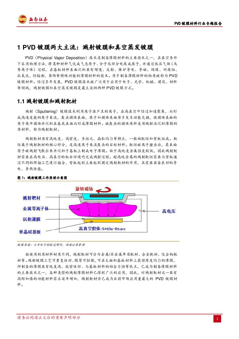西南证券:PVD镀膜材料行业专题报告:溅射“中国芯”,蒸镀“中国屏”.pdf